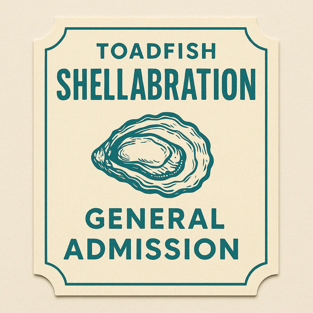 EARLY ACCESS (1:30-3pm) to our special VIP event on the dock at Bowen’s Island with exclusive cold smoked oysters, caviar, and champagne. Hosted by Raw Lab & Darling Oyster Bar. Exclusive VIP Toadfish Gift Bag $75+ Value All General Admission Access - 3-7pm, access to oysters from an amazing selection of local farms, food, beer, wine, welcome cocktail, and access to the silent auction with art, experiences, bourbon, fishing charters, wine, local brands.